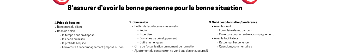 - D’ajouter à l’organisation du bottin des informations sur le type de formation privilégié par le facilitateur afin de maximiser l’efficacité de l’appariement;