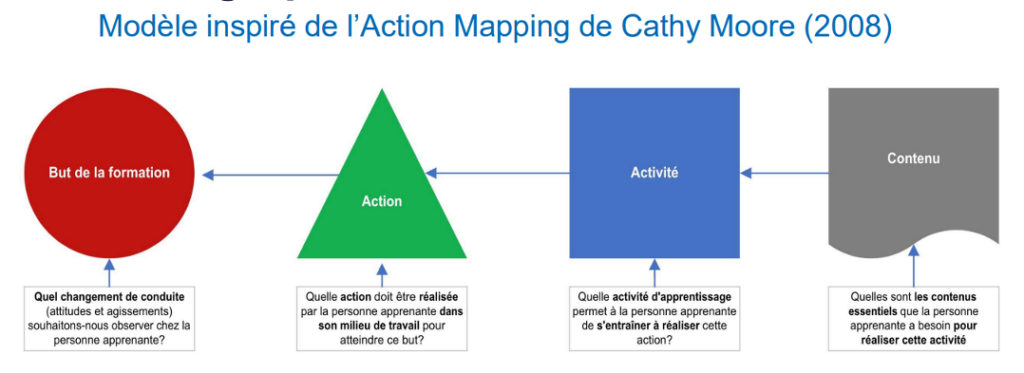 Cette méthode a transformé sa façon de concevoir, entre autres, la formation à distance en se concentrant sur les changements que nous souhaitons observer chez les personnes apprenantes plutôt que de se focaliser sur la simple transmission de connaissances.